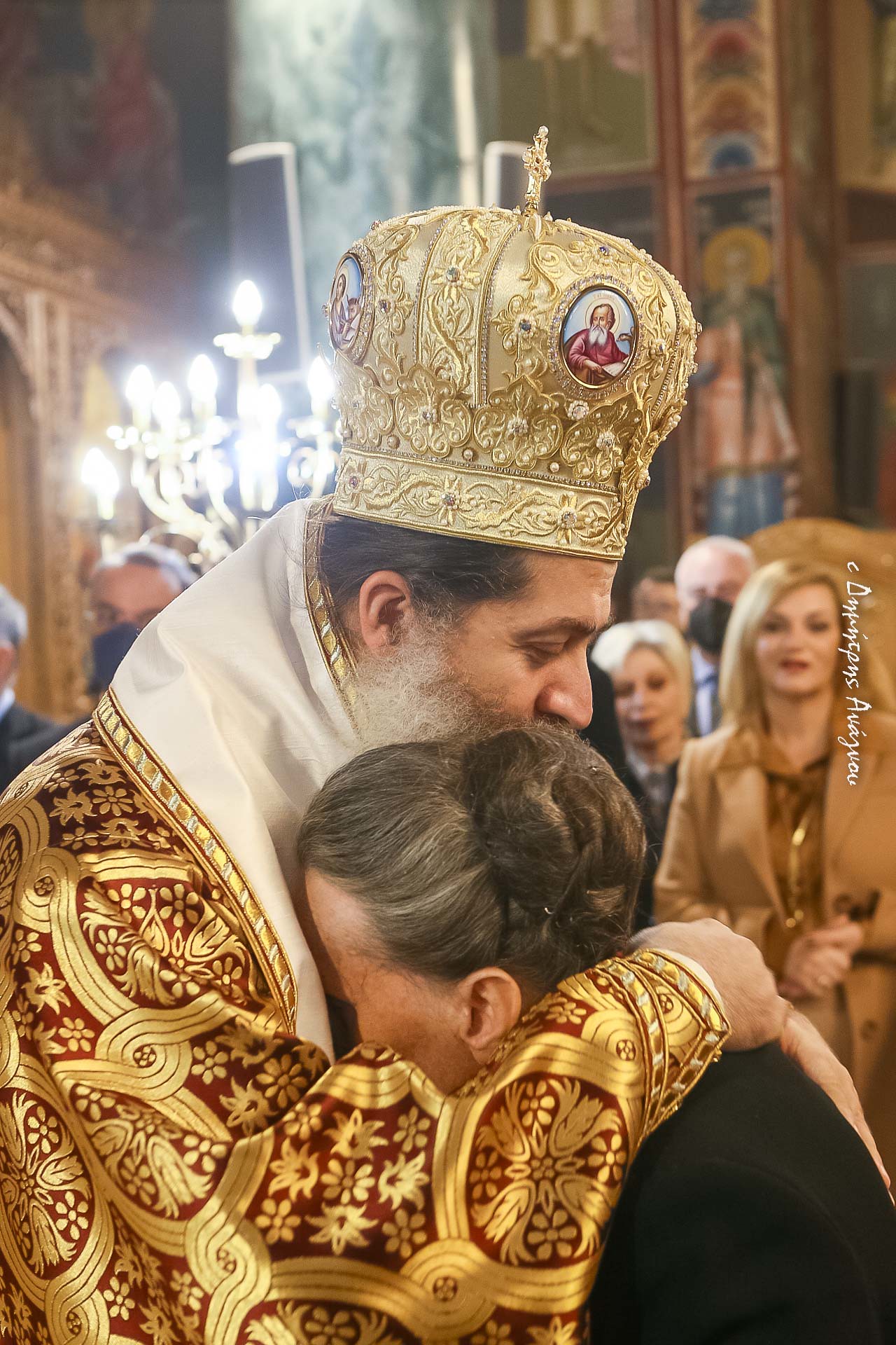 Νομίζω και διερμηνεύω τα συναισθήματα όλων ότι ενώπιον μίας τέτοιας διακόνισσας της αγάπης υποκλίνεται η ελληνική κυβέρνηση δια της παρουσίας του κυρίου Υπουργού, υποκλίνονται οι Βουλευτές μας δια της παρουσίας τους, υποκλίνονται οι εκπαιδευτικοί μας δια της παρουσίας τους, υποκλίνεται η τοπική αυτοδιοίκηση, ο δήμος, η περιφέρεια, υποκλίνονται οι εργάτες της κοινωνικής ειρήνης και ευταξίας και της άμυνας και ασφάλειας της πατρίδος μας, οι θεματοφύλακες του Γένους, οι ένοπλες δυνάμεις, τα σώματα ασφαλείας. Υποκλίνονται οι φορείς, τα κόμματα, οι παρατάξεις, οι πολιτιστικοί σύλλογοι, οι επιστημονικοί φορείς, υποκλίνονται τα παιδιά μας, οι μαθητές και οι μαθήτριες, υποκλίνονται οι μάνες, οι γυναίκες, υποκλίνονται οι αγωνίστριες του φεμινιστικού κινήματος, των γυναικείων κινημάτων, υποκλίνονται όλοι σήμερα μπροστά σας, καθώς θα σας απονεμηθεί δια των αναξίων χειρών το ανώτατο παράσημο της Ιεράς Μητροπόλεως μας».