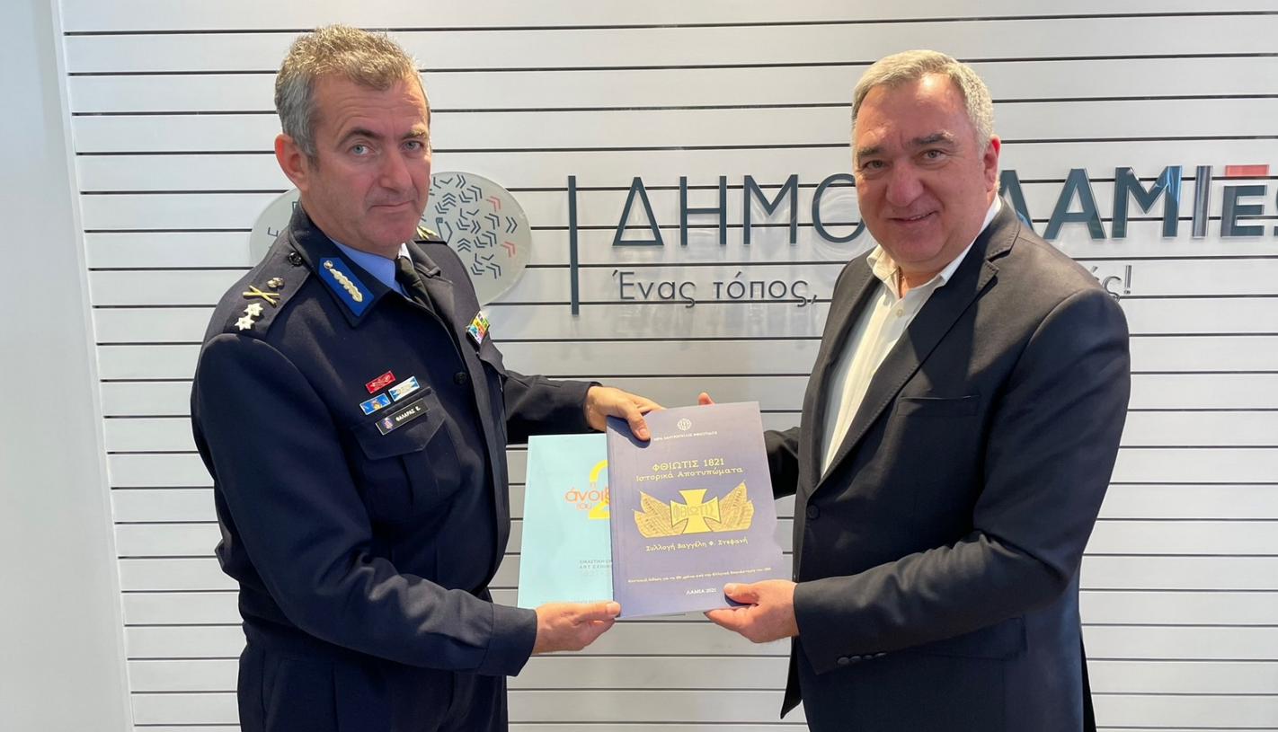Η εθιμοτυπική συνάντηση του Δημάρχου Λαμιέων Θύμιου Καραΐσκου και του νέουΣυντονιστή Πυροσβεστικών Υπηρεσιών Στερεάς Ελλάδας και Θεσσαλίας ολοκληρώθηκε με ανταλλαγή ευχών και δώρων.