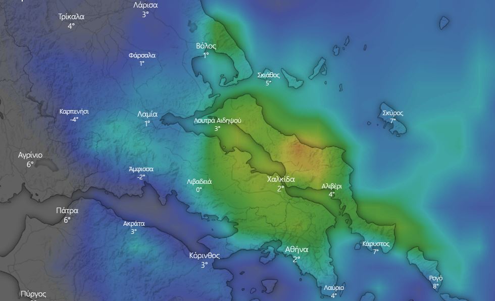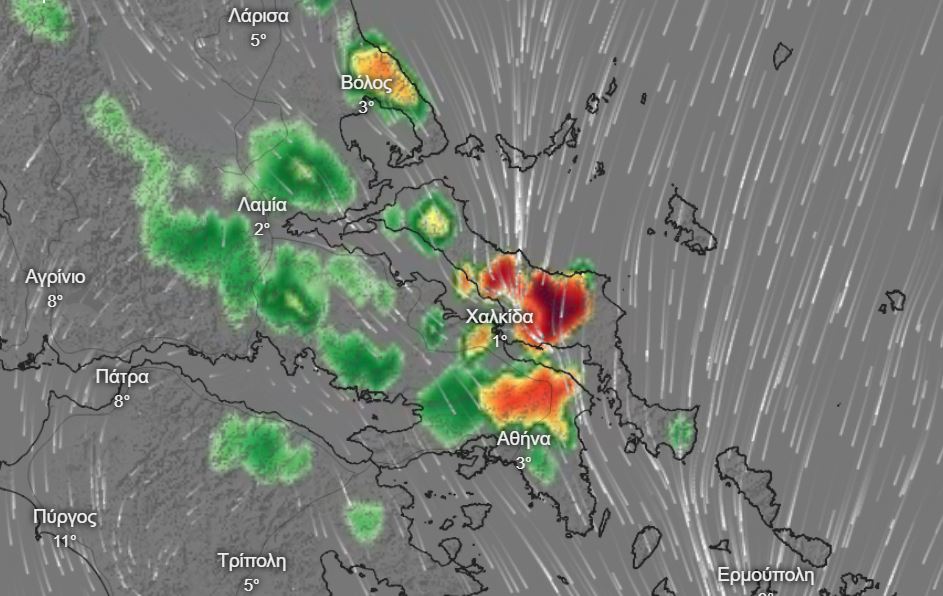 Δείτε παρακάτω δύο διαφορετικά μοντέλα πρόγνωσης τρίωρου για την Κεντρική Ελλάδα που προβλέπουν χιονόπτωση και μέσα στη Λαμία μεσημβρινές ώρες.