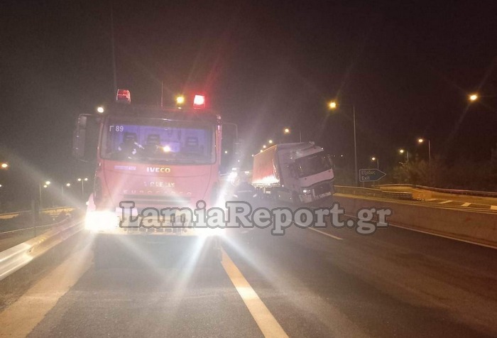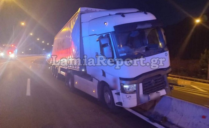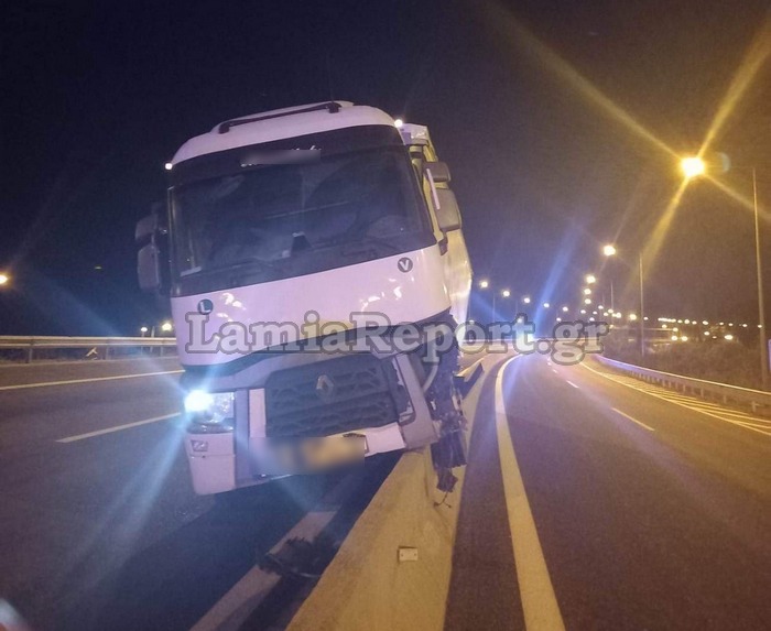 Φθιώτιδα: Νταλίκα «σκαρφάλωσε» στο διαχωριστικό στηθαίο (ΦΩΤΟ)