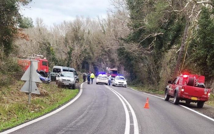 Ο δρόμος αποκλείστηκε για λίγα λεπτά, ωστόσο γρήγορα δόθηκε και πάλι στην κυκλοφορία με τη βοήθεια των πληρωμάτων της αστυνομίας.