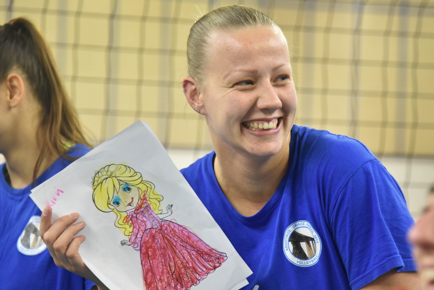 Πριν την προπόνηση, τα παιδιά είχαν τη δυνατότητα να φωτογραφηθούν με τα κορίτσια του ΑΟΛ και να τους δώσουν ζωγραφιές που είχαν φτιάξει αποκλειστικά για εκείνα.