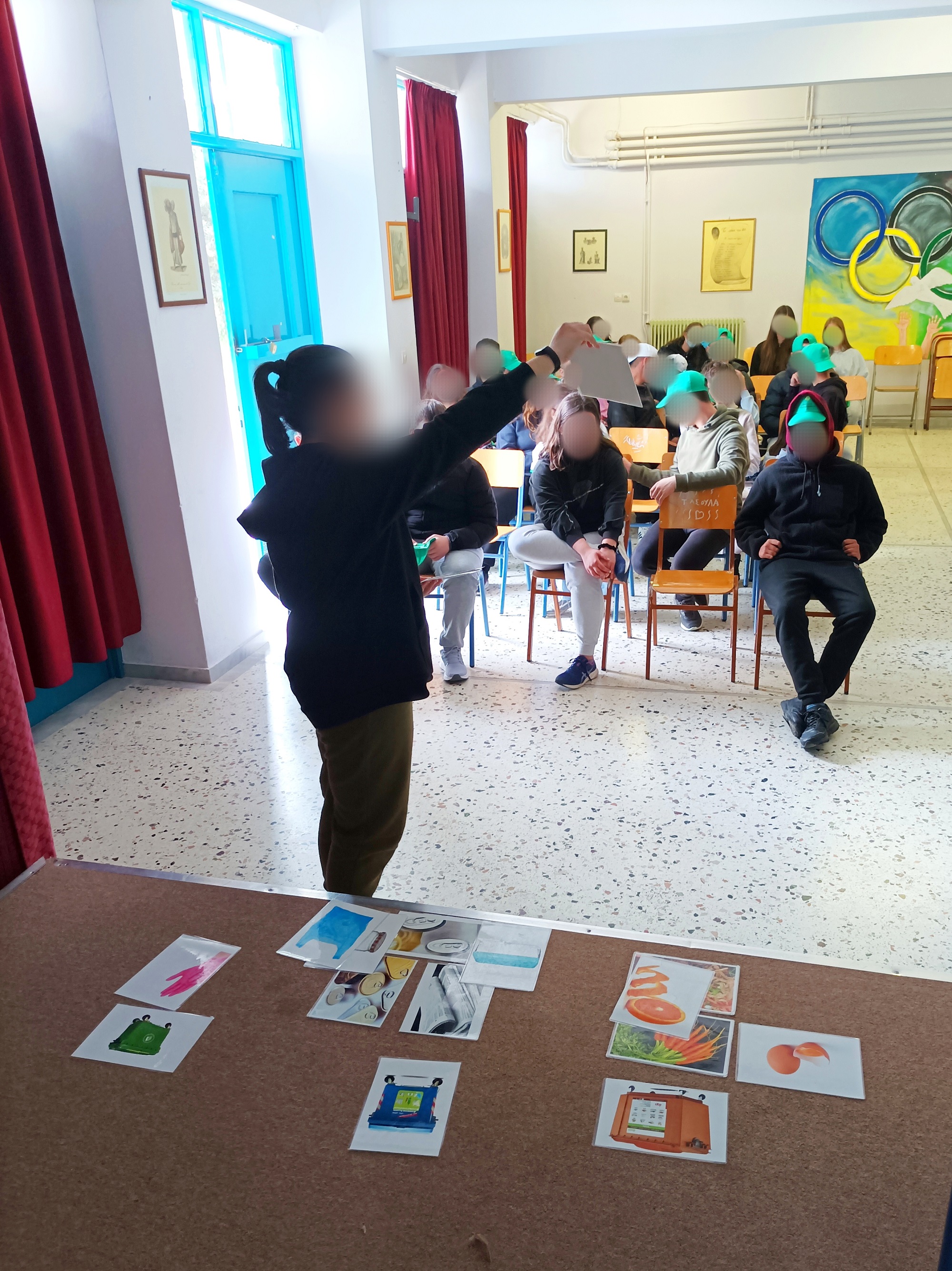 Στη συνέχεια, οι μαθητές συμμετείχαν με ιδιαίτερο ενθουσιασμό στο παιχνίδι του ‘’κρυμμένου θησαυρού των σκουπιδιών’’, ανακαλύπτοντας πως τα ίδια τα ‘’σκουπίδια’’ είναι ένας ‘’κρυμμένος θησαυρός’’ καθώς με τη σωστή διαχείρισή τους μπορούν να ωφελήσουν τόσο το περιβάλλον όσο και τον ίδιο τον άνθρωπο (υγεία, οικονομία κ.ά.).