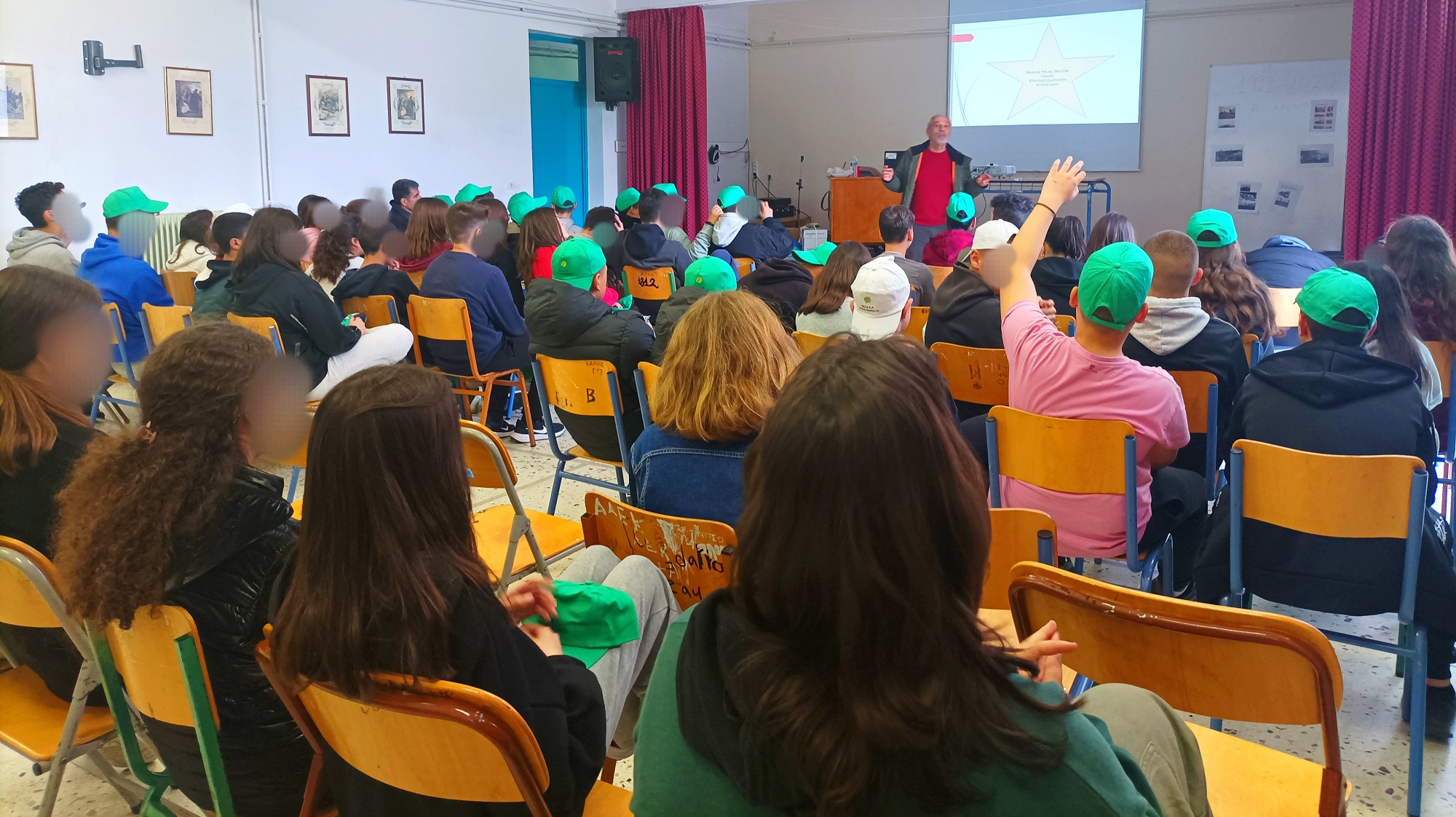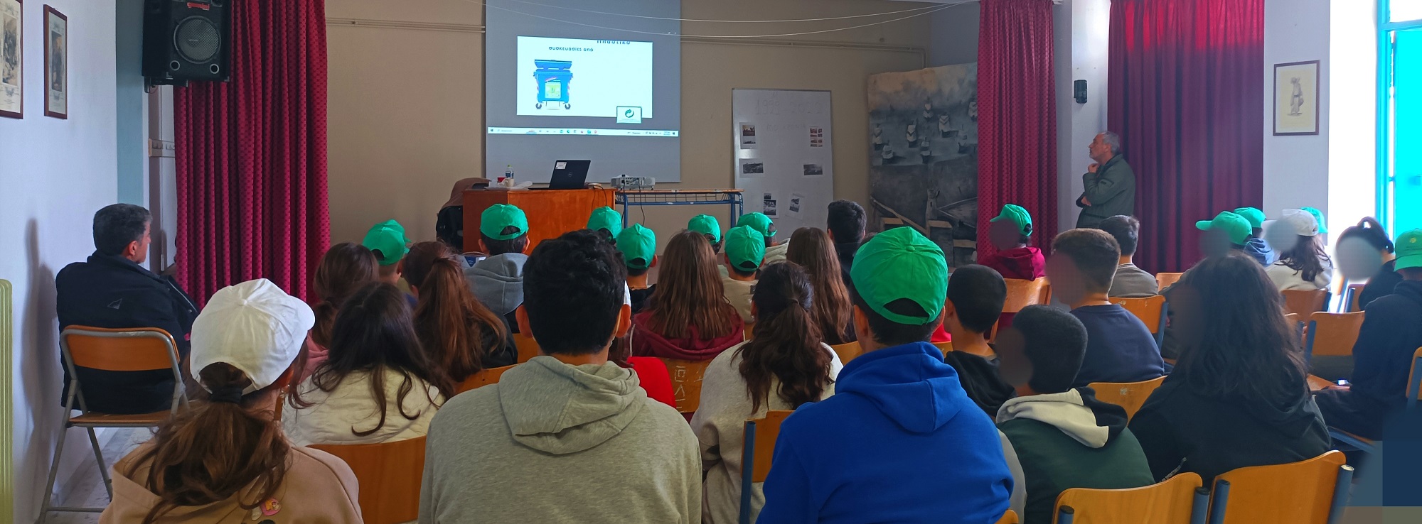 Οι μαθητές είχαν την ευκαιρία να παρακολουθήσουν μια οργανωμένη παρουσίαση και βίντεο σχετικά με την προστασία του περιβάλλοντος μέσω της ορθής διαχείρισης των απορριμμάτων, της ανακύκλωσης, της κομποστοποίησης, της επαναχρησιμοποίησης, της διαλογής στην πηγή και άλλων πρακτικών φιλικών προς το περιβάλλον. Παράλληλα, ήρθαν σε επαφή με δύσκολες έννοιες όπως είναι οι Χώροι Ανεξέλεγκτης Διάθεσης Απορριμμάτων (ΧΑΔΑ), οι Χώροι Υγειονομικής Ταφής Απορριμμάτων (ΧΥΤΑ), οι Μονάδες Επεξεργασίας Απορριμμάτων (ΜΕΑ) κ.ά.