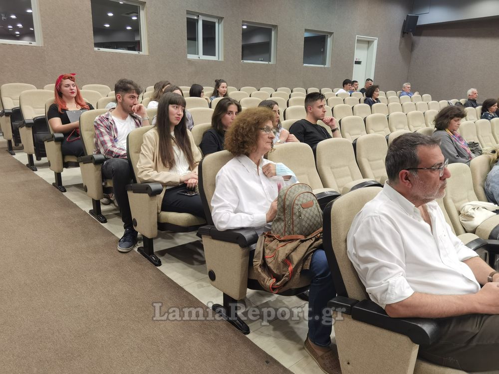 Να σημειώσουμε ότι παρευρέθηκαν και απηύθυναν χαιρετισμό, ο εκπρόσωπος του Σεβασμιότατου Μητροπολίτη Φθιώτιδας, Αρχιμανδρίτης π. Ηρωδίων Ρίζος ο Βουλευτής Φθιώτιδας Γιώργος Κοτρωνιάς, ο Αντιπεριφερειάρχης Φθιώτιδας Ηλίας Σανίδας και ο οικοδεσπότης Δήμαρχος Λαμιέων Ευθύμιος Καραΐσκος. Παρευρέθηκαν επίσης η Εντεταλμένη Δημοτική Σύμβουλος για τον Πολιτισμό Ευμορφία Ρουποτιά-Σκαμαγκούλη, ο Περιφερειακός Σύμβουλος Χριστόφορος Αχινιώτης, ο Διευθυντής Δευτεροβάθμιας Εκπαίδευσης Φθιώτιδας Κωνσταντίνος Σπαλιώρας, η Προϊσταμένη Εκπαιδευτικών Θεμάτων Δευτεροβάθμιας Εκπαίδευσης Φθιώτιδας Αικατερίνη Καλογήρου, ο γνωστός ποινικολόγος Γιώργος Δούμας και εκπαιδευτικοί της δημόσιας και ιδιωτικής εκπαίδευσης.