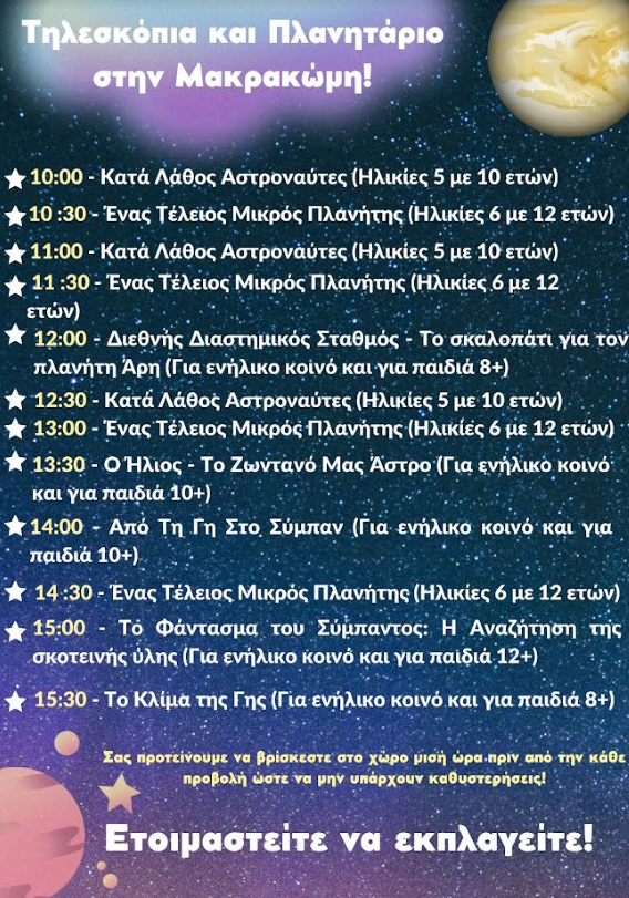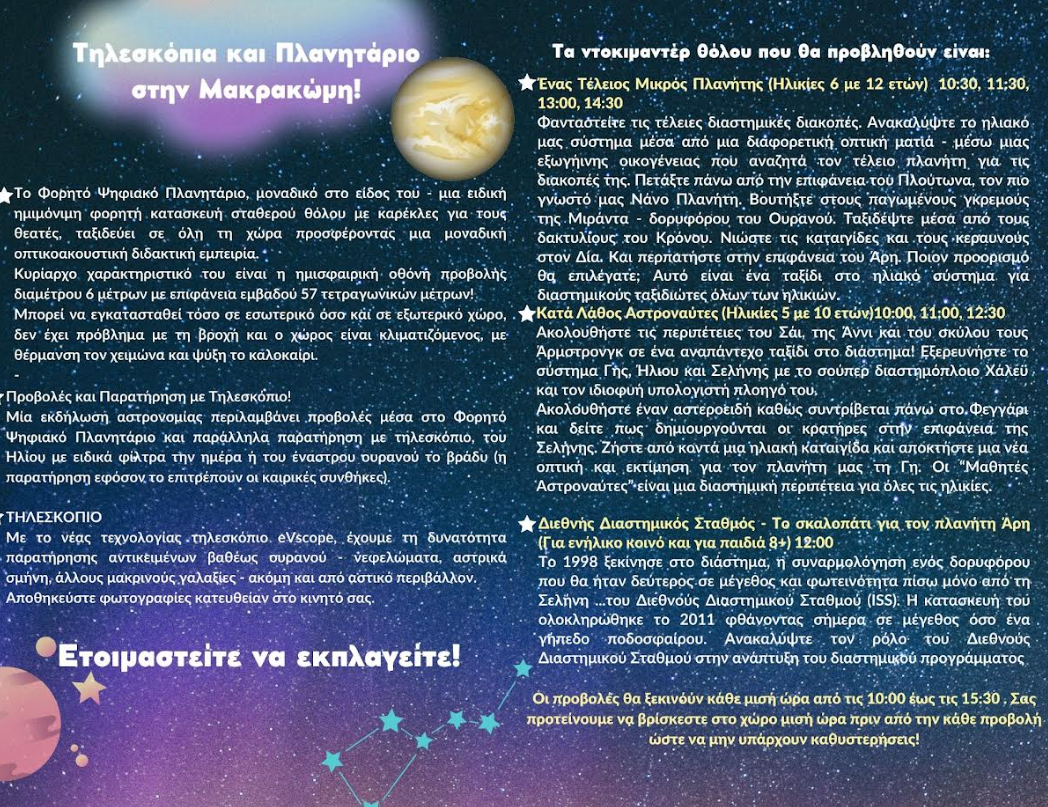 Την επόμενη Κυριακή το Φορητό Ψηφιακό Πλανητάριο στη Μακρακώμη