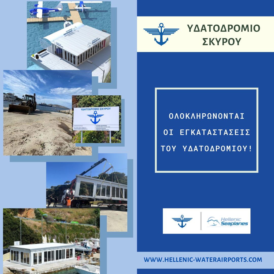Ολοκληρώθηκε η χερσαία εγκατάσταση του υδατοδρομίου του νησιού της Σκύρου δίνοντας έτσι νέα ώθηση στο δίκτυο υδατοδρομίων της Ελλάδας, ενώ σύμφωνα με την Hellenic Seaplanes σειρά παίρνουν τα υδατοδρόμια Σκοπέλου, Αλοννήσου, Καλαμάτας και Κυλλήνης.