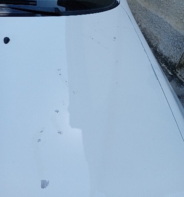 Τις φωτογραφίες μας της έστειλε αναγνώστης που βρήκε το πρωί της Τρίτης (30/5) το αυτοκίνητο του να έχει υποστεί ζημιά από διαβρωτικό υγρό που του έριξαν στο καπό!