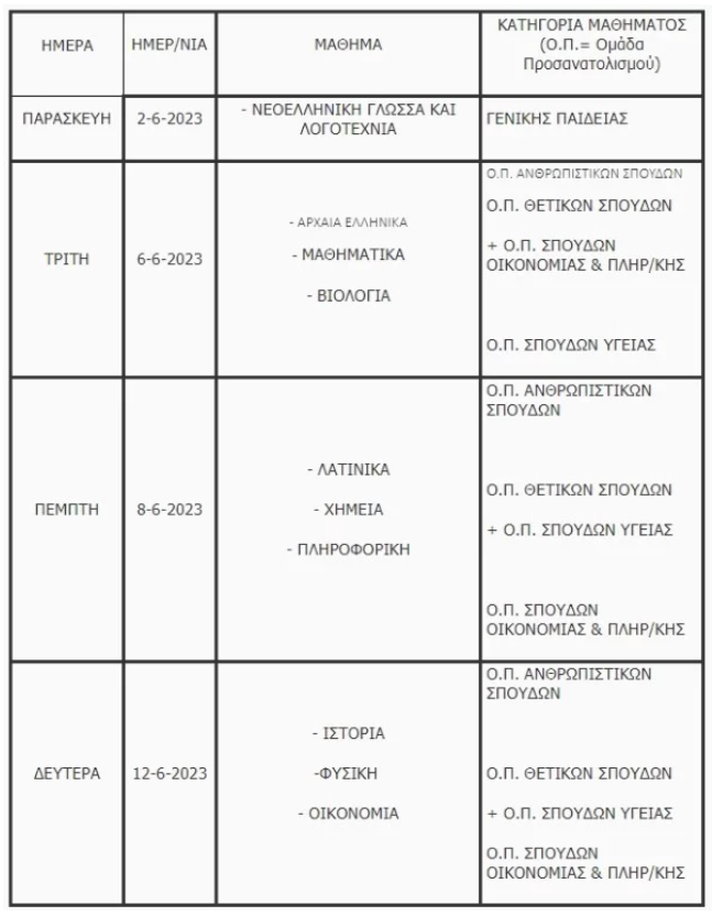 Ακολουθεί το αναλυτικό πρόγραμμα των Πανελλήνιων Εξετάσεων 2023:
