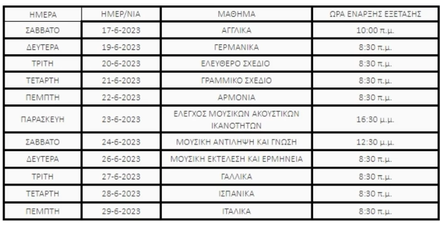 Γ. ΠΡΟΓΡΑΜΜΑ ΕΞΕΤΑΣΕΩΝ ΕΙΔΙΚΩΝ ΜΑΘΗΜΑΤΩΝ και ΜΟΥΣΙΚΩΝ ΜΑΘΗΜΑΤΩΝ 2023 ΓΙΑ ΓΕΛ & ΕΠΑΛ