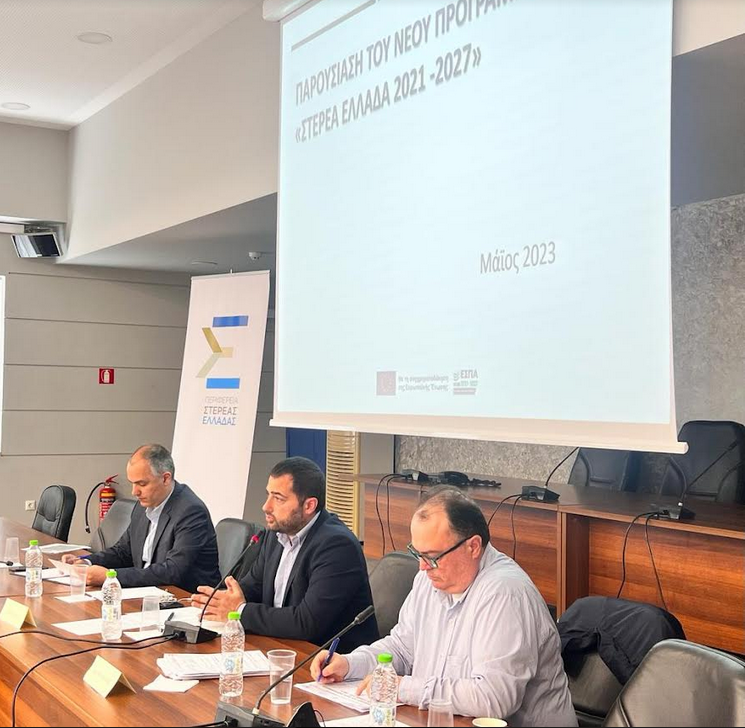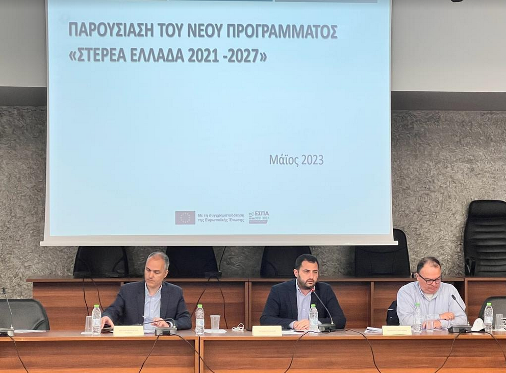 Ο Περιφερειάρχης Στερεάς Ελλάδας Φάνης Σπανός, ο Προϊστάμενος της ΕΥΔΕΠ Κωνσταντίνος Λέμας και στελέχη της Διαχειριστικής αρχής παρουσίασαν την Παρασκευή 02 Ιουνίου 2023, το νέο Περιφερειακό Πρόγραμμα «Στερεά Ελλάδα 2021-2027» στους κοινωνικούς εταίρους της Π.Ε. Εύβοιας.
