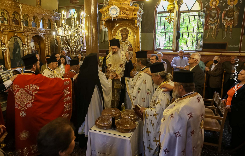 Ανήμερα της Εορτής ο κ. Συμεών ιερούργησε στον Ιερό Ναό Αγίας Τριάδος στην όμορφη πόλη της Μαλεσίνας.