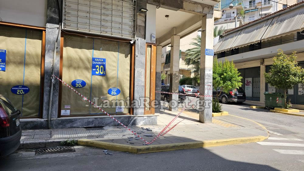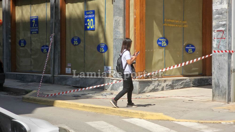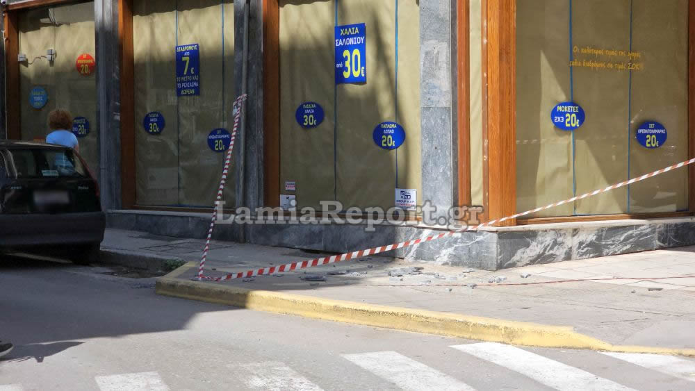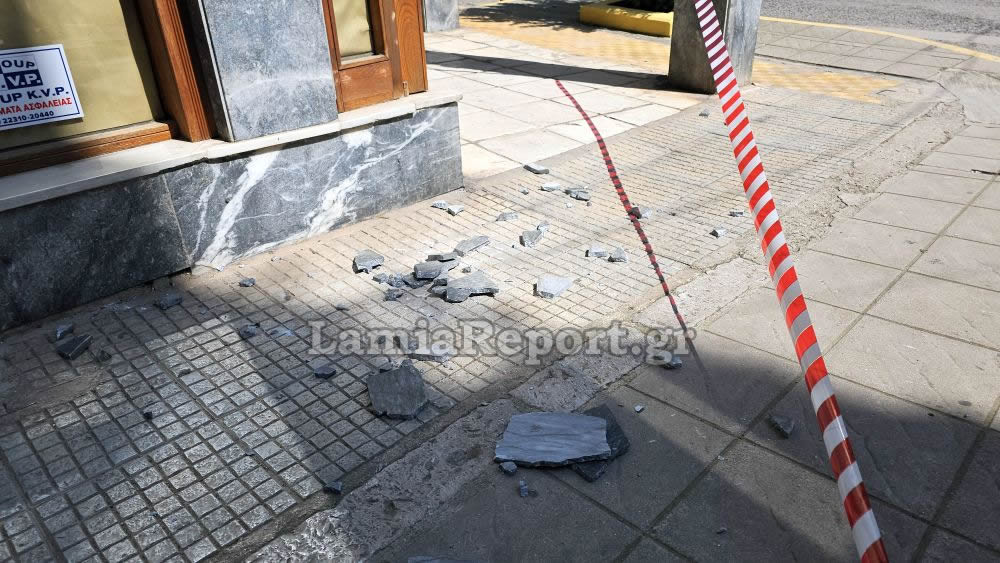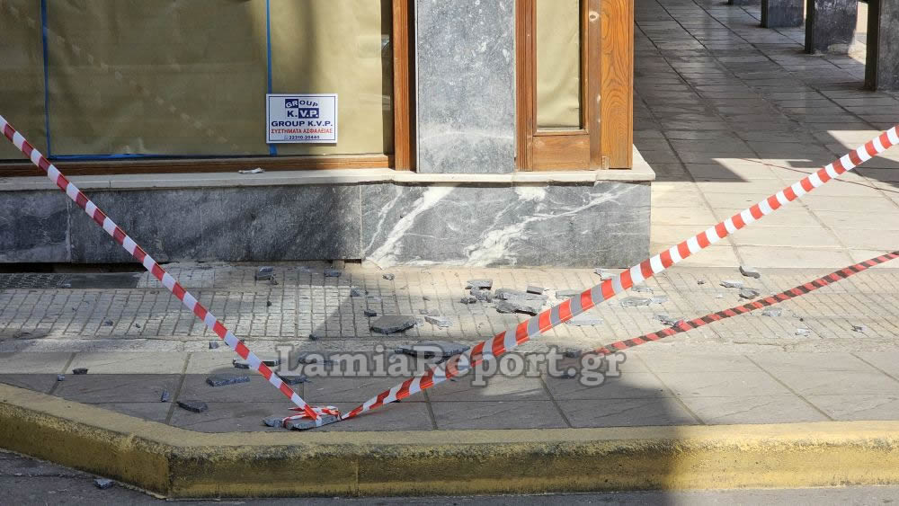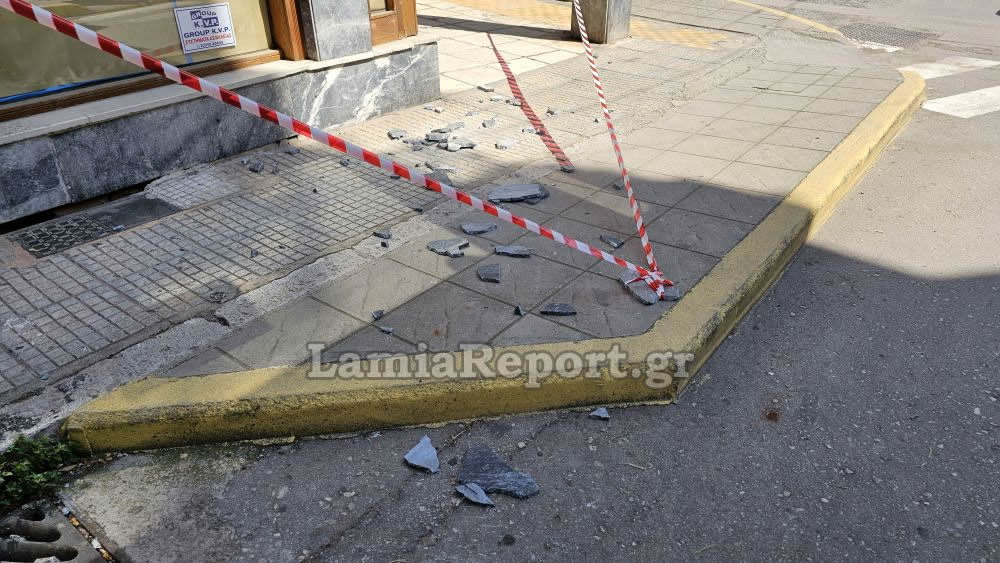 Λαμία: Έπεσαν μάρμαρα στο κέντρο της πόλης - Κινδύνευσε ντελιβεράς (ΒΙΝΤΕΟ-ΦΩΤΟ)