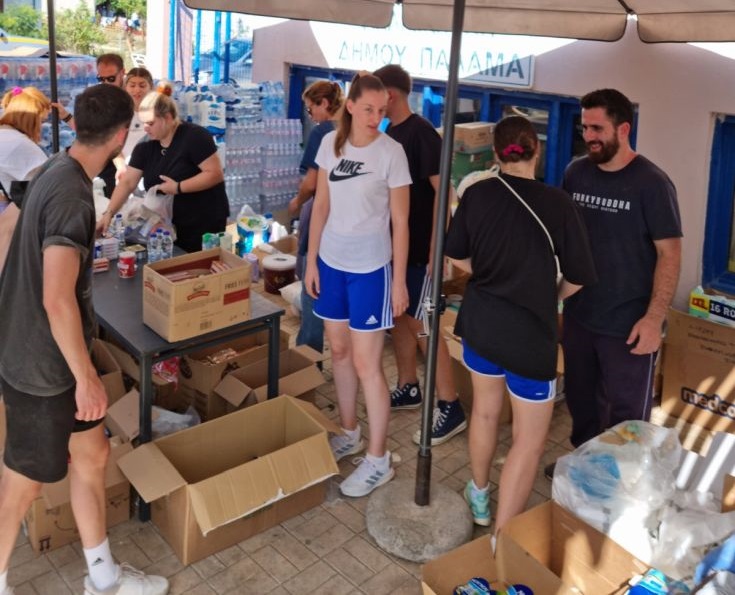 Ύστερα από τηλεφωνική επικοινωνία με τον Δήμαρχο Παλαμά κ. Γιώργο Σακελλαρίου, ο οποίος περιέγραψε τη δραματική κατάσταση που βιώνουν οι πολίτες βλέποντας τα σπίτια και τις περιουσίες τους να έχουν χαθεί στη λάσπη και τονίζοντας τις τεράστιες ελλείψεις σε τροφή και νερό, αποφασίστηκε η άμεση παράδοση ενός φορτίου με τρόφιμα και εμφιαλωμένο νερό.