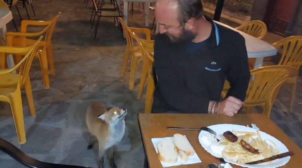 Η αλεπουδίτσα τακτικός θαμώνας στο καφενείο του χωριού - ΒΙΝΤΕΟ