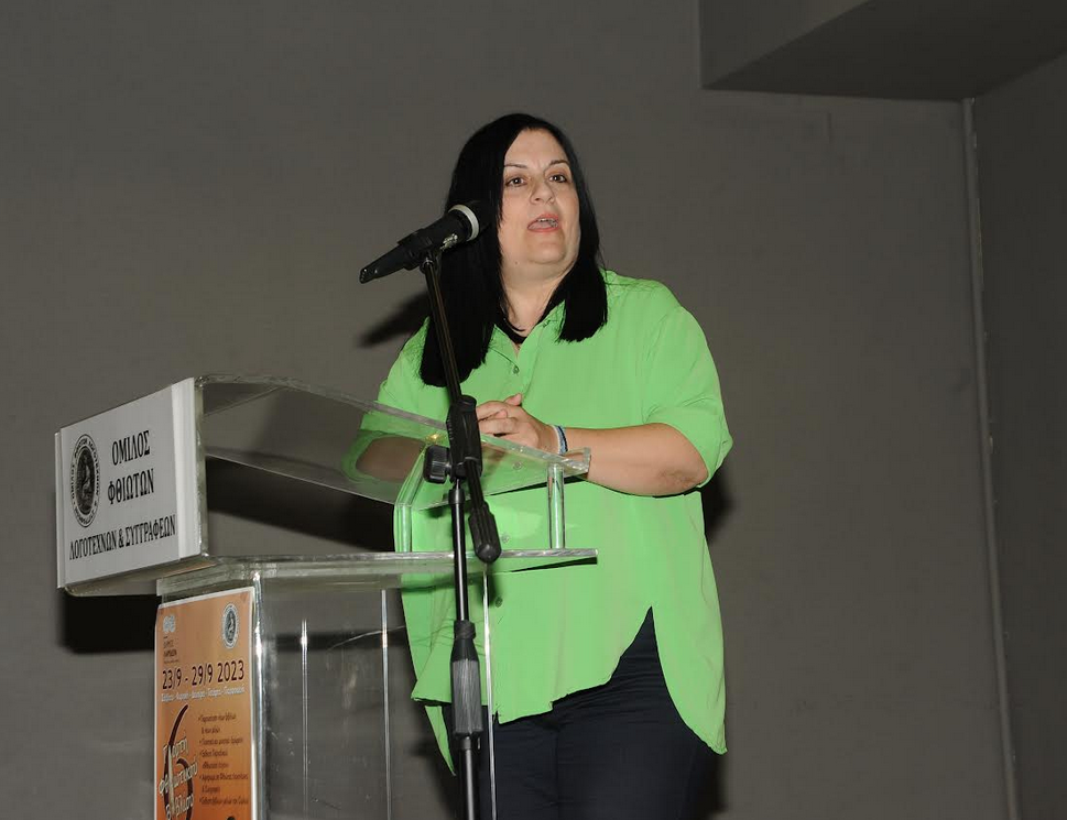Την εκδήλωση χαιρέτισε η Εντεταλμένη Δημοτική Σύμβουλος Πολιτισμού Ευμορφία Ρουποτιά η οποία αναφέρθηκε στην παιδαγωγική, μορφωτική και πολιτιστική αξία της λογοτεχνίας και συνεχάρη τον Όμιλο για τις πλούσιες και αξιόλογες δράσεις του και την προσφορά του στον πολιτισμό.