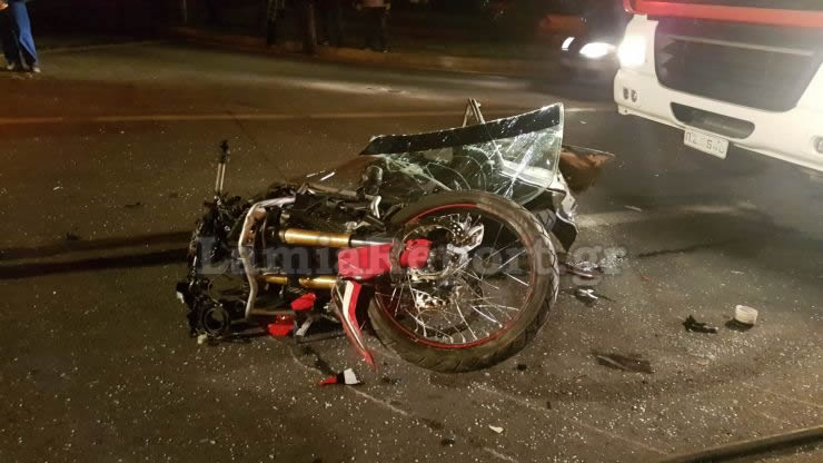 Στην επόμενη φωτογραφία βλέπετε τη μηχανή καρφωμένη στο αυτοκίνητο. Χρειάστηκε η επέμβαση των πυροσβεστών για να απεγκλωβιστεί ο νεκρός οδηγός του αυτοκινήτου.
