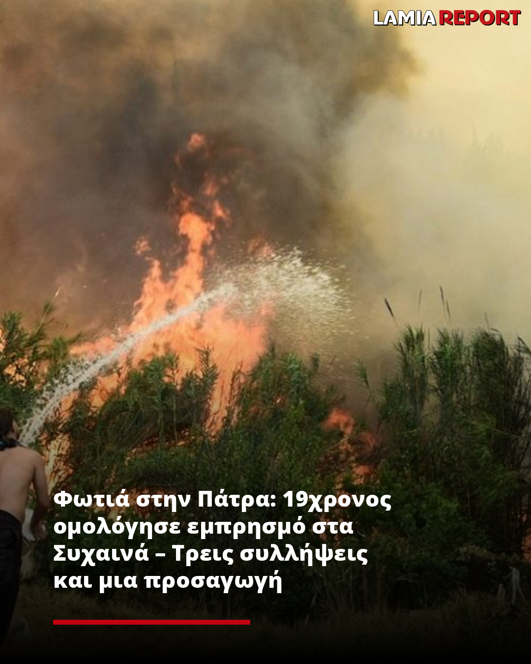Σύμφωνα με πληροφορίες, ο νεαρός φαίνεται να είπε στους αστυνομικούς ότι αυτός έβαλε φωτιά με αναπτήρα στα Συχαινά της Πάτρας, ενώ η φωτιά πήρε γρήγορα μεγάλες διαστάσεις εξαιτίας των ισχυρών ανέμων.