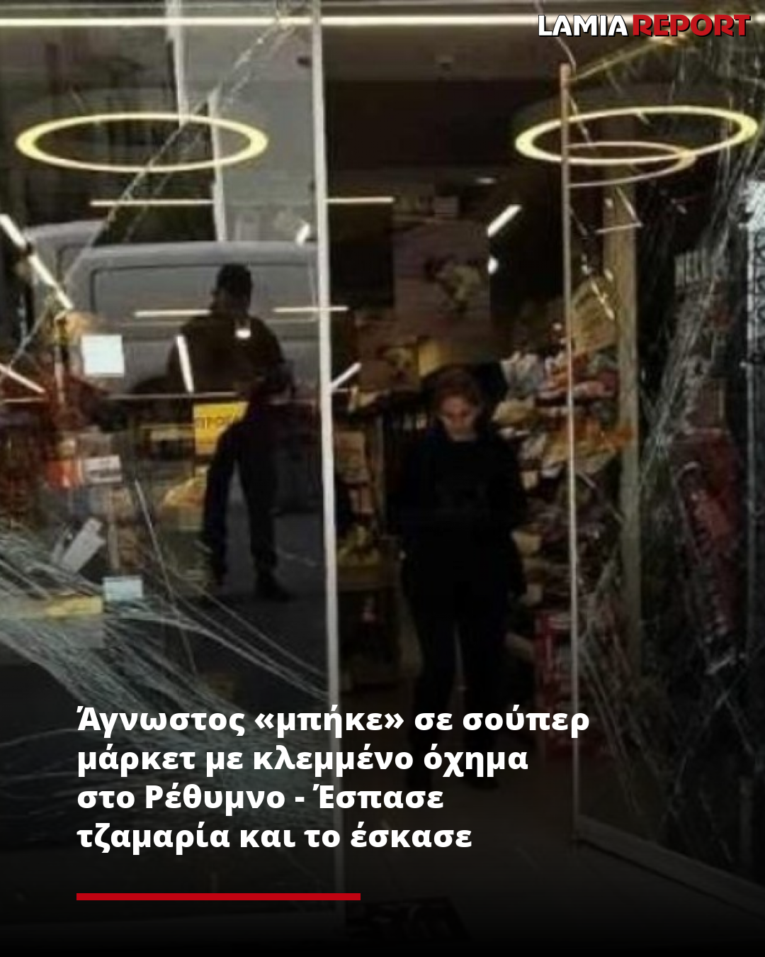 Άγνωστος «μπήκε» σε σούπερ μάρκετ με κλεμμένο όχημα στο Ρέθυμνο - Έσπασε τζαμαρία και το έσκασε