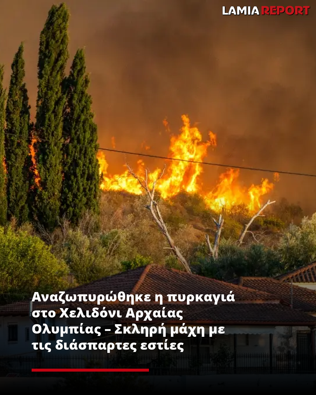 Η μεγάλη πυρκαγιά στο Χελιδόνι Αρχαίας Ολυμπίας σημειώνει αναζωπυρώσεις το απόγευμα του Σαββάτου, ενώ οι προσπάθειες κατάσβεσης από την Πυροσβεστική Υπηρεσία είναι αδιάκοπες. Οι διάσπαρτες εστίες και οι άνεμοι που πνέουν στην περιοχή δεν αφήνουν περιθώρια εφησυχασμού.