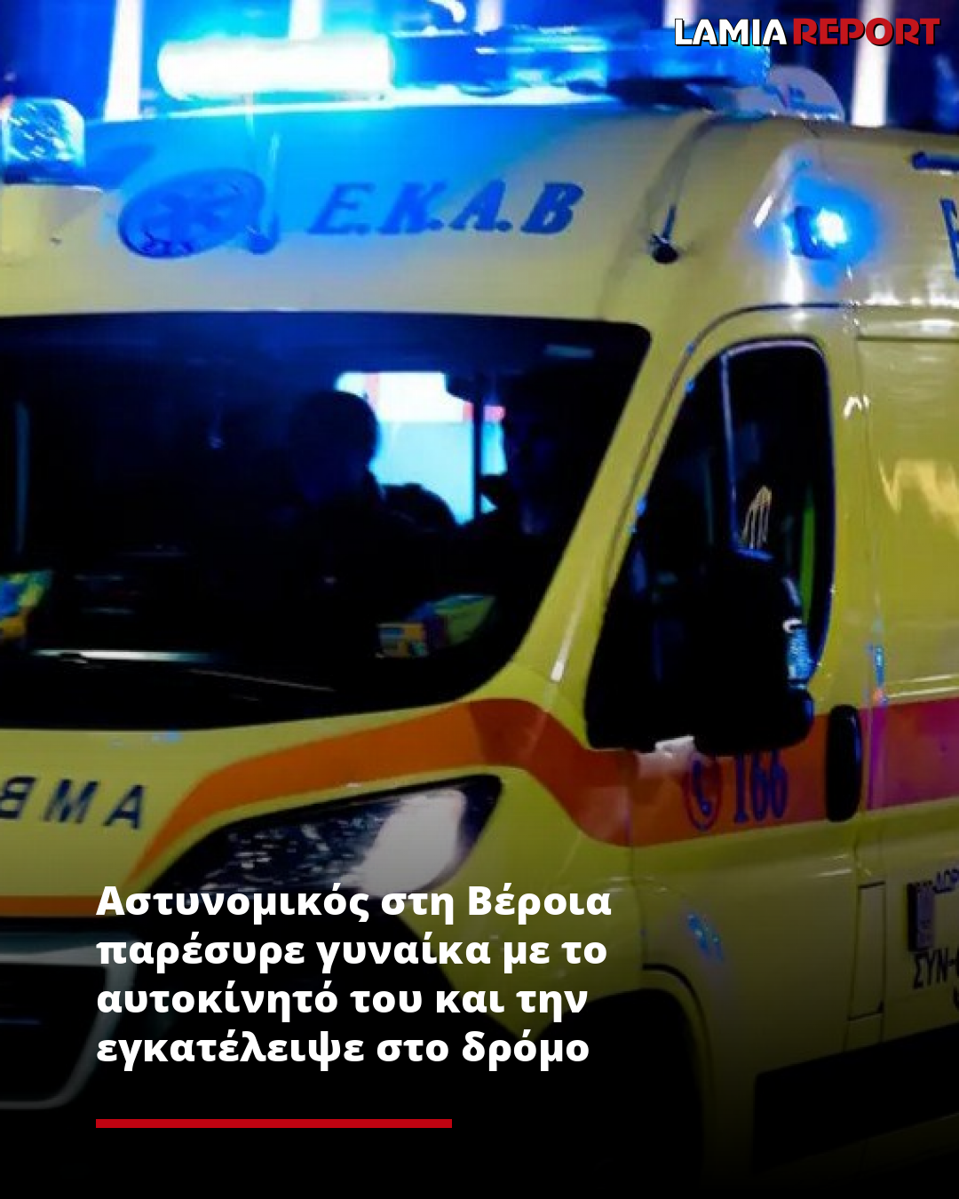 Συγκεκριμένα, το ατύχημα σημειώθηκε γύρω στις 5 το πρωί της περασμένης Κυριακής, όταν ο αστυνομικός στη συμβολή των οδών Πιερίων και Ανοίξεως (στους Λαδόμυλους), παρέσυρε και χτύπησε μια 60χρονη γυναίκα, αφήνοντάς την στη μέση του δρόμου.