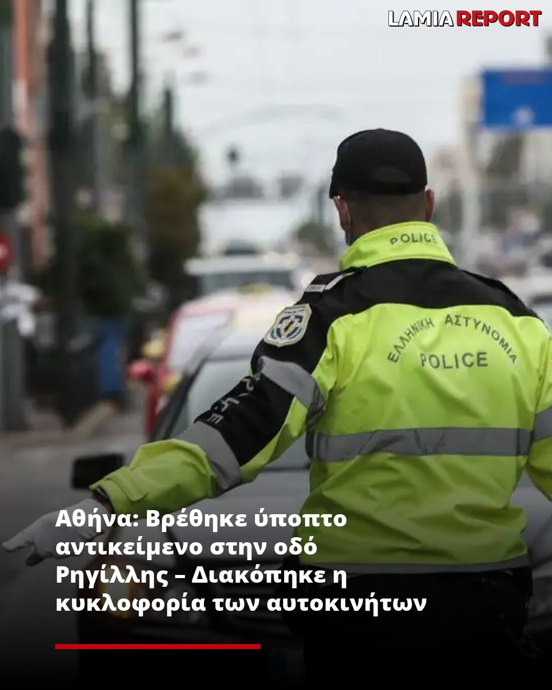 Η αστυνομία έχει προχωρήσει στη διακοπή της κυκλοφορίας των οχημάτων λόγω ύποπτου αντικειμένου που βρέθηκε στην οδό Ρηγίλλης.