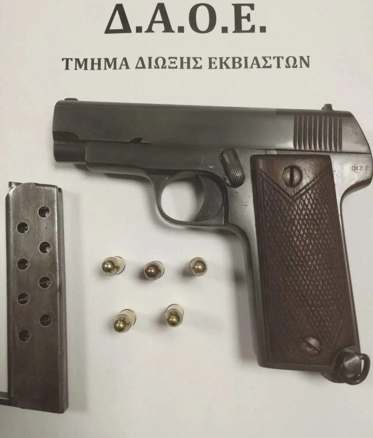 Όπως αποδείχθηκε, ο κατηγορούμενος τη στιγμή που διασκέδαζε σε νυχτερινό μαγαζί της Αθήνας, πιάστηκε να έχει μέσα στην τσάντα του όπλο με γεμιστήρα που περιείχε 5 φυσίγγια. Οι αστυνομικοί κατάσχεσαν το όπλο όπως επίσης και 2 κινητά.