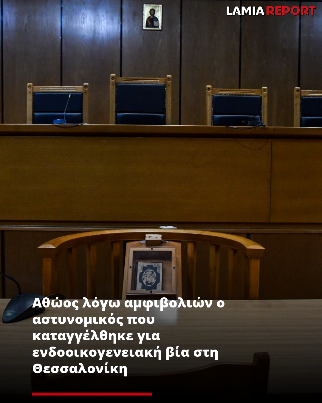 Αθώος λόγω αμφιβολιών κρίθηκε ο 45χρονος αστυνομικός που παραπέμφθηκε να δικαστεί στο Αυτόφωρο Μονομελές Πλημμελειοδικείο Θεσσαλονίκης ύστερα από καταγγελία της 37χρονης συζύγου του για περιστατικό ενδοοικογενειακής βίας.