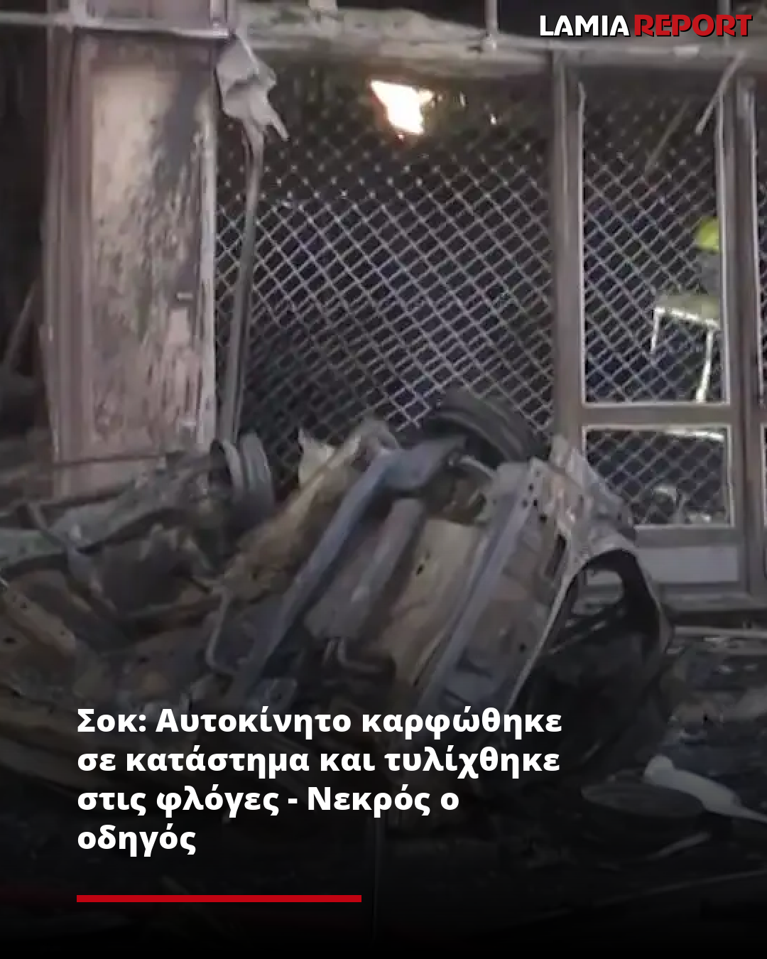 Από τη φωτιά κάηκε ολοσχερώς το όχημα και το κατάστημα, ενώ λίγο αργότερα εντόπισαν νεκρό τον οδηγό.