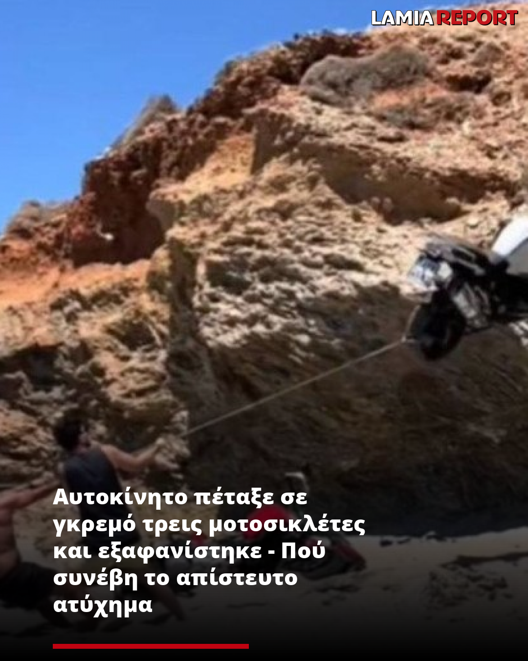 Ένα πρωτοφανές ατύχημα συνέβη σε παραλία της Καρύστου, με έναν οδηγό να συγκρούεται με σταθμευμένες μοτοσικλέτες και να τις ρίχνει από ύψος περίπου 5 μέτρων στην αμμουδιά.