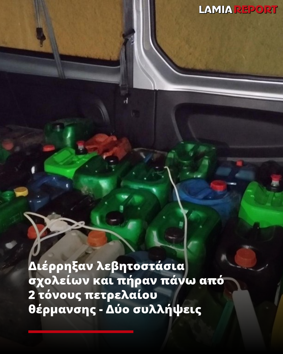 Διέρρηξαν λεβητοστάσια σχολείων και πήραν πάνω από 2 τόνους πετρελαίου θέρμανσης - Δύο συλλήψεις