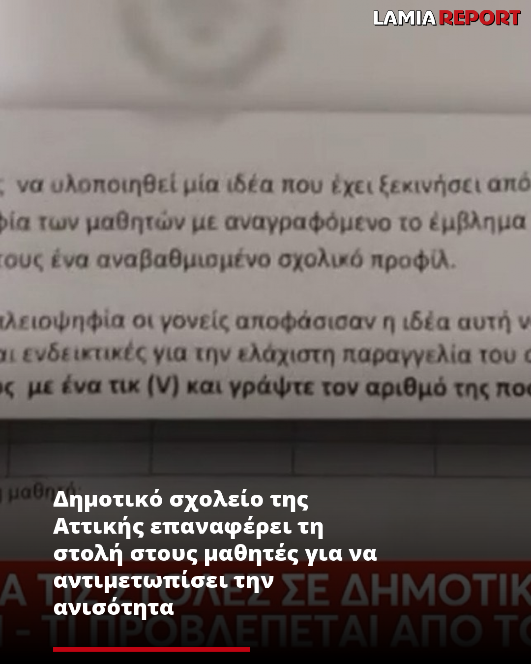 Την προηγούμενη εβδομάδα οι γονείς των παιδιών του συγκεκριμένου σχολείου έλαβαν ένα χαρτί από τον Σύλλογο Γονέων που ζητούσε αν επιθυμούν να υπογράψουν για να επιστρέψουν οι μαθητικές στολές.