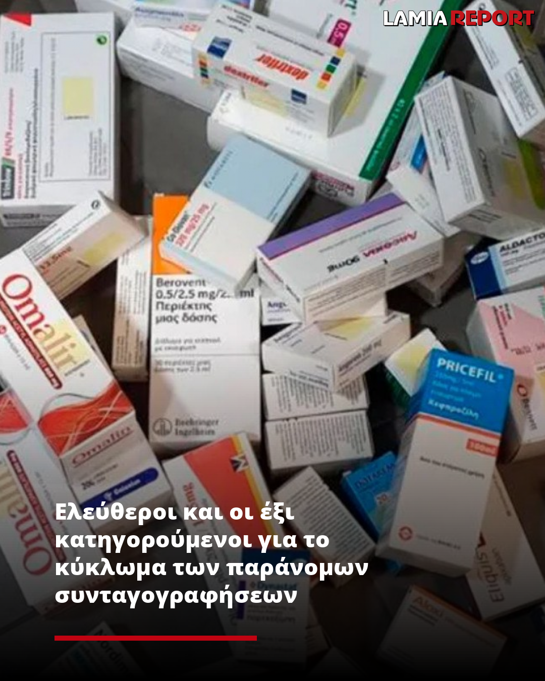 Ελεύθεροι με περιοριστικούς όρους ή χωρίς, αφέθηκαν μετά τις απολογίες τους, οι έξι κατηγορούμενοι για την υπόθεση του κυκλώματος των παράνομων συνταγογραφήσεων στο οποίο αποδίδονται παράνομες συνταγογραφήσεις σε βάθος 5ετίας ύψους 47.000 ευρώ.