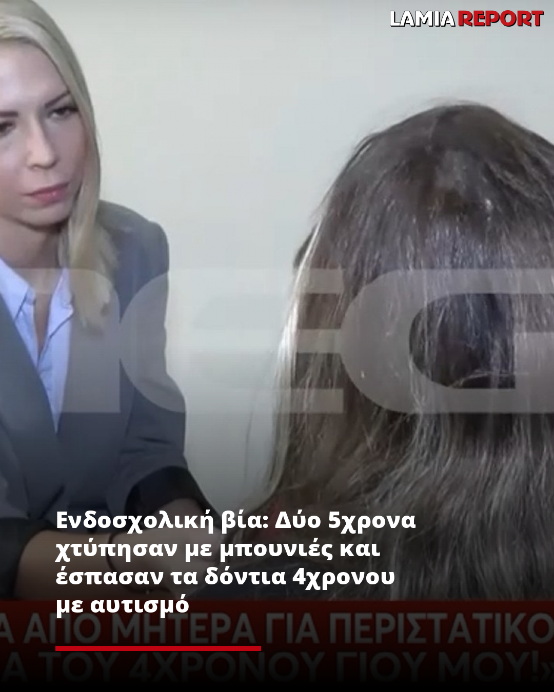 Η μητέρα του θύματος καταγγέλλει στην κάμερα του Live News πως το σχολείο αμέσως την πήρε τηλέφωνο για να την ενημερώσει, λέγοντας πως απλά κουτούλησε με ένα άλλο παιδάκι, χτύπησε ελαφρά και είχε αίμα σε δύο μόνο δοντάκια.
