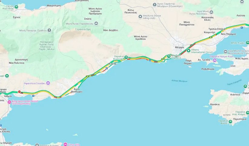 Σε κάποια σημεία μάλιστα, στον χάρτη της κυκλοφορίας, η κίνηση είναι στο «κόκκινο».