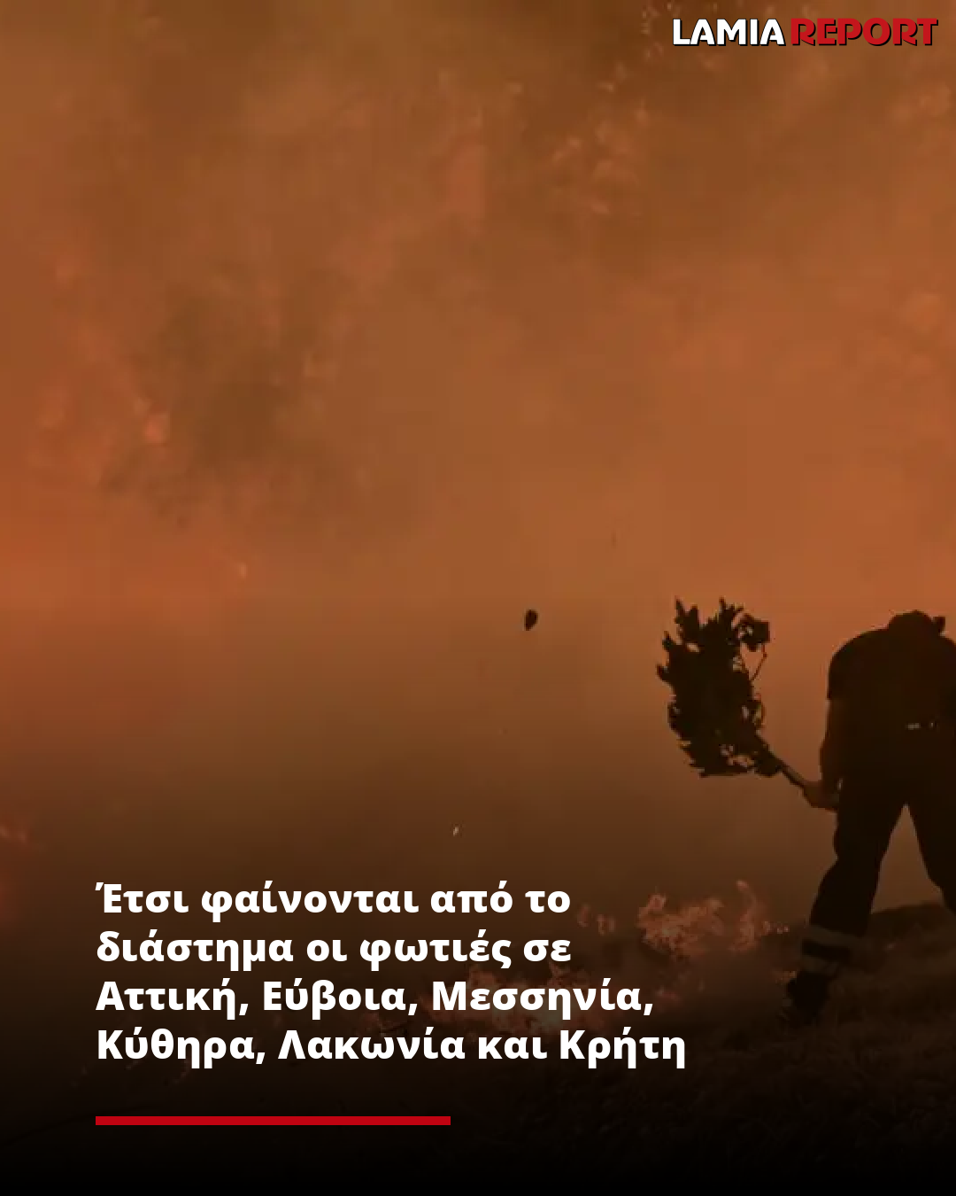Οι φωτιές σε μια σειρά από περιοχές της χώρας είναι ορατές από το διάστημα, με τον καπνό να εξαπλώνεται ταχύτατα λόγω των ανέμων. Πυροσβέστες δίνουν μάχες σε Εύβοια, Αττική, Μεσσηνία, Λακωνία, Κύθηρα και Κρήτη, με πρωταρχικό στόχο να μην κινδυνέψει ανθρώπινη ζωή.