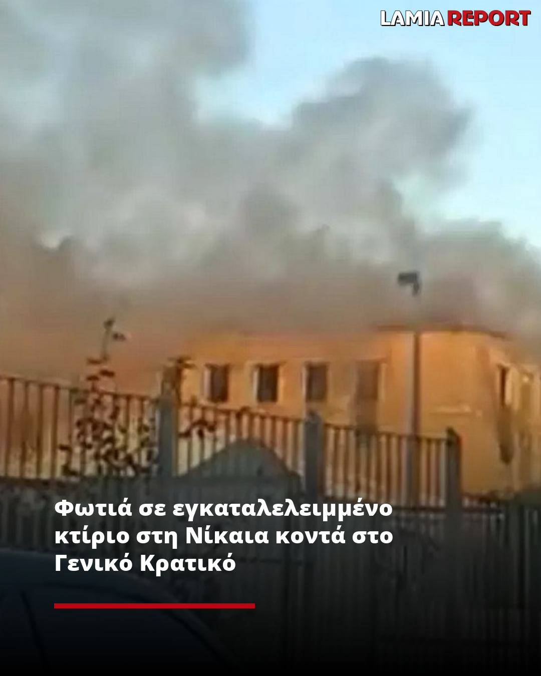Το κτίριο είναι κοντά στο Γενικό Κρατικό της Νίκαιας και οι καπνοί φαίνονται μέχρι το λιμάνι του Πειραιά.