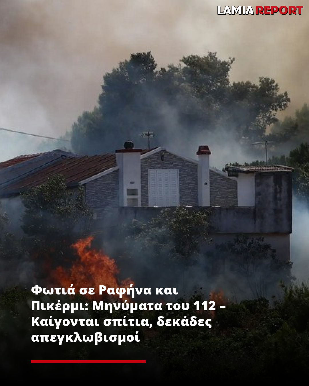 Φωτιά σε Ραφήνα και Πικέρμι: Μηνύματα του 112 – Καίγονται σπίτια, δεκάδες απεγκλωβισμοί