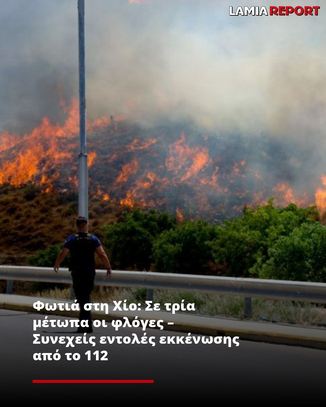 Νέο 112 που βγήκε στις 15:25 κάλεσε τους κατοίκους των περιοχών Δαφνώνας, Βερβεράτο, Χαλκειό, Βασιλεώνοικο, Γρού και Ζυφιάς να απομακρυνθούν προς την πόλη της Χίου.