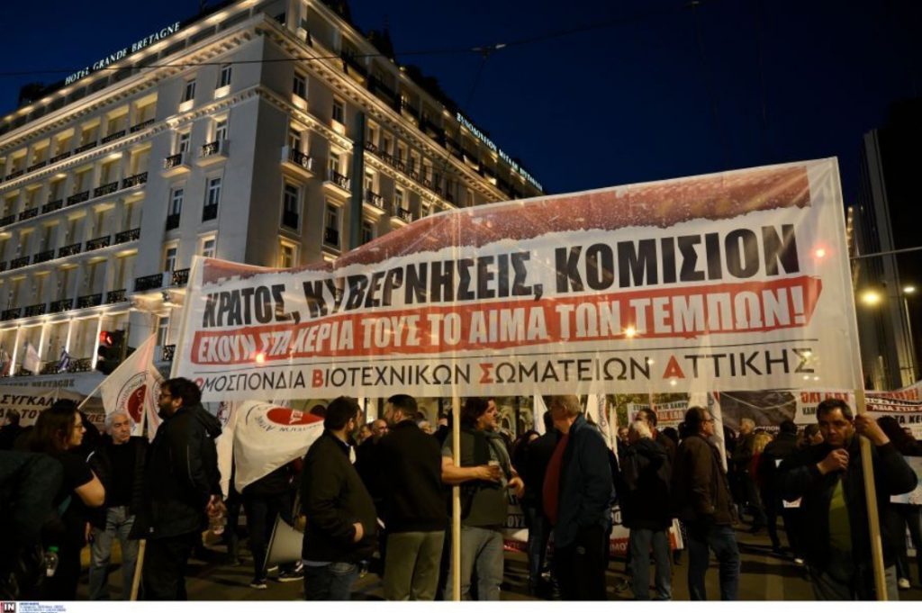 Το συλλαλητήριο για τα Τέμπη στο Σύνταγμα, οργανώθηκε από εργατικά κέντρα, ομοσπονδίες και συνδικάτα την ημέρα την ψηφοφορίας στη Βουλή, για την πρόταση δυσπιστίας στην κυβέρνηση, η οποία αναμένεται να γίνει αργά το βράδυ.