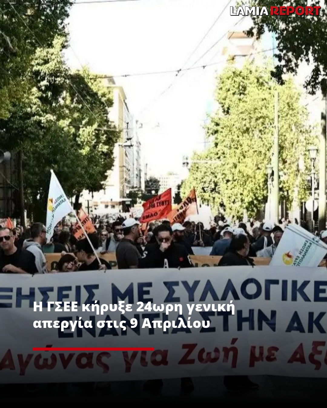 Η ΓΣΕΕ ανακοίνωσε πως κήρυξε 24ωρη γενική απεργία στις 9 Απριλίου 2025 για το τρίπτυχο «ακρίβεια, στεγαστική κρίση/μισθοί, συλλογικές διαπραγματεύσεις».
