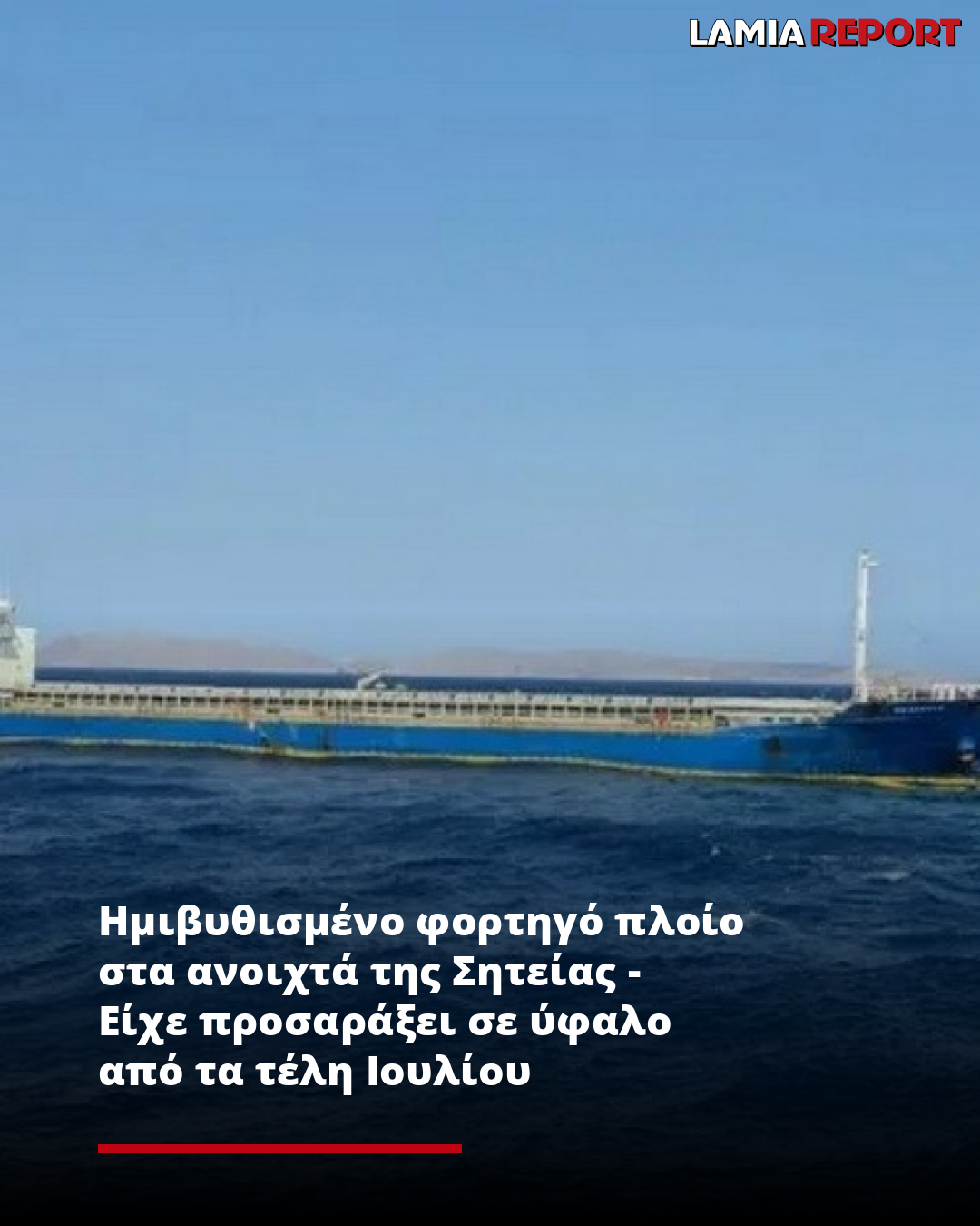 Ημιβυθισμένο φορτηγό πλοίο στα ανοιχτά της Σητείας - Είχε προσαράξει σε ύφαλο από τα τέλη Ιουλίου