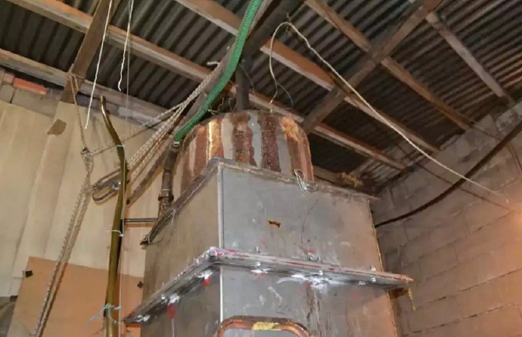 - πλήρης εξοπλισμός συστήματος απόσταξης, αποτελούμενος από χειροποίητο άμβυκα σε κατάσταση πλήρους λειτουργίας καύσης πετρελαίου μετά μηχανισμού ψύξης και της συνοδευόμενης δεξαμενής εξαγωγής αποσταγμένου αλκοολούχου υγρού,