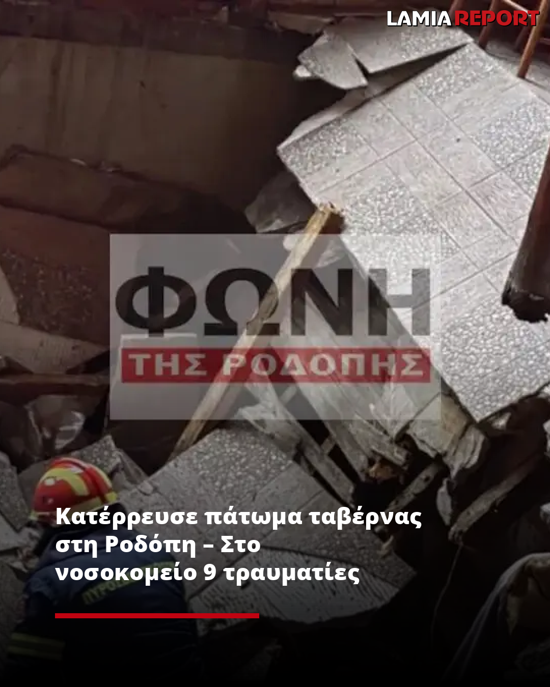 Το πάτωμα μιας ταβέρνας στην Ροδόπη υποχώρησε με αποτέλεσμα οι πελάτες να χάσουν κυριολεκτικά τη γη κάτω από τα πόδια τους. Εννέα από αυτούς μεταφέρθηκαν στο νοσοκομείο με θλαστικά τραύματα.