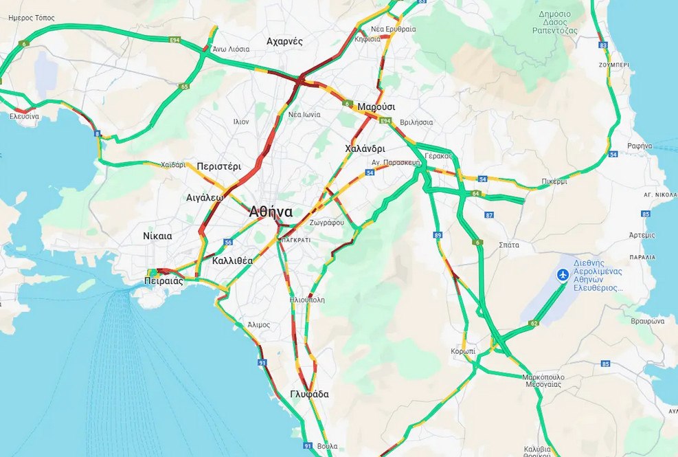Τόσο στο κέντρο και τον Πειραιά όσο σε Κηφισιά και Γλυφάδα, τα αυτοκίνητα κινούνται με «βήμα σημειωτόν».