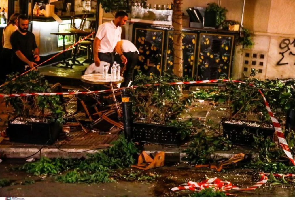 Καρέκλες και τραπέζια πετιούνται στον αέρα, θαμώνες σηκώνονται έντρομοι, ενώ άλλοι τρέχουν να απομακρυνθούν από το σημείο της πρόσκρουσης