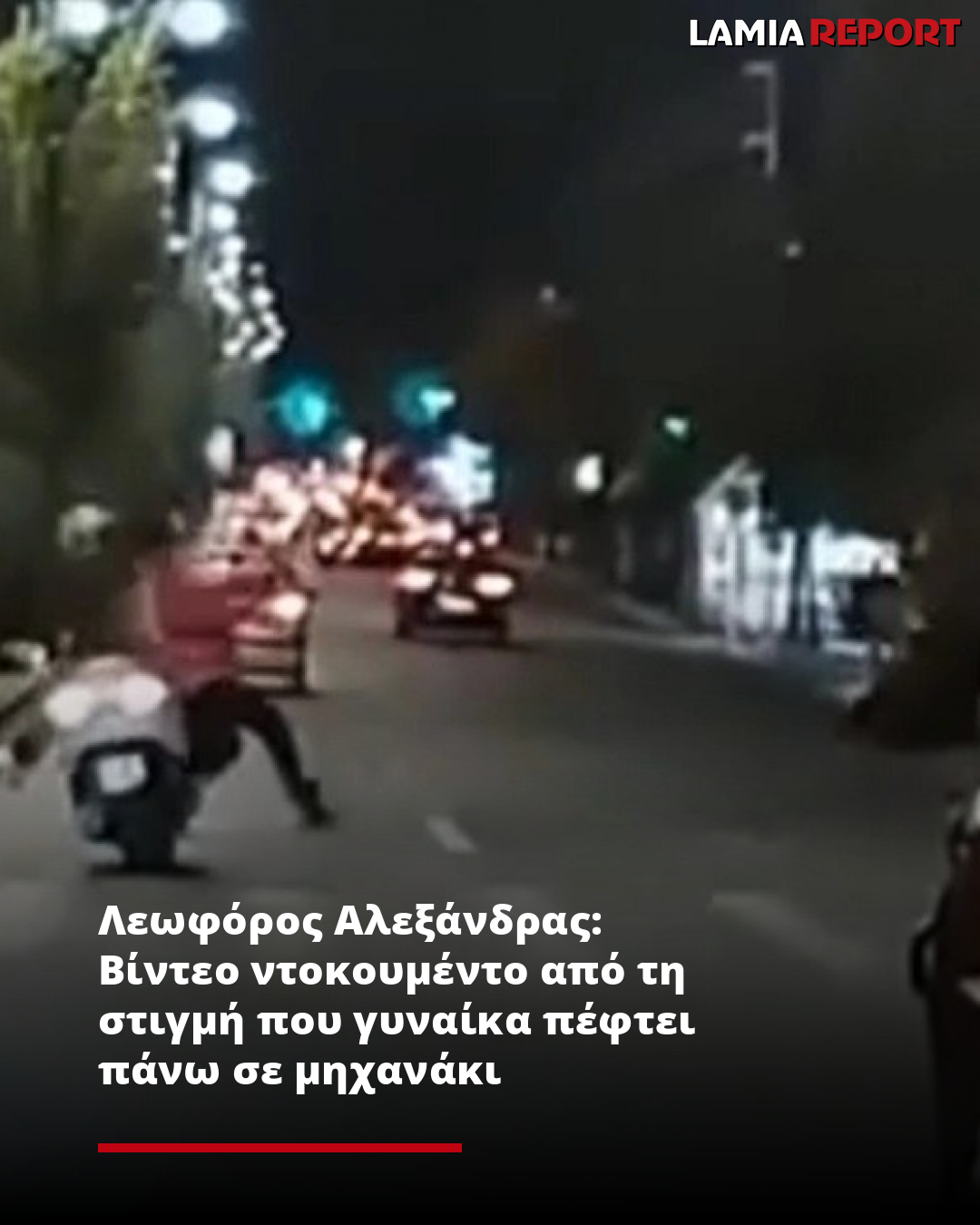 Bίντεο ντοκουμέντο δείχνει την στιγμή που μια γυναίκα πέφτει πάνω σε μηχανάκι στη λεωφόρο Αλεξάνδρας.