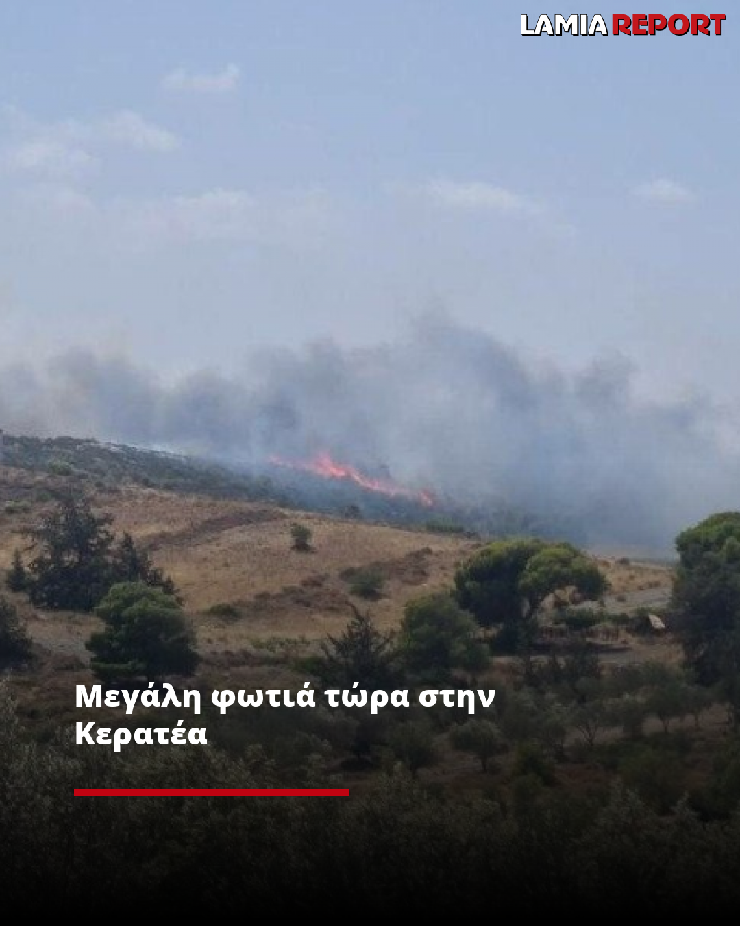 Μεγάλη φωτιά τώρα στην Κερατέα
