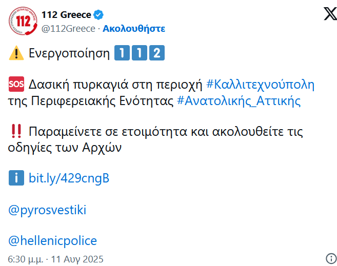 Στις 18.30 το απόγευμα, ήχησε μήνυμα του 112 για ετοιμότητα.