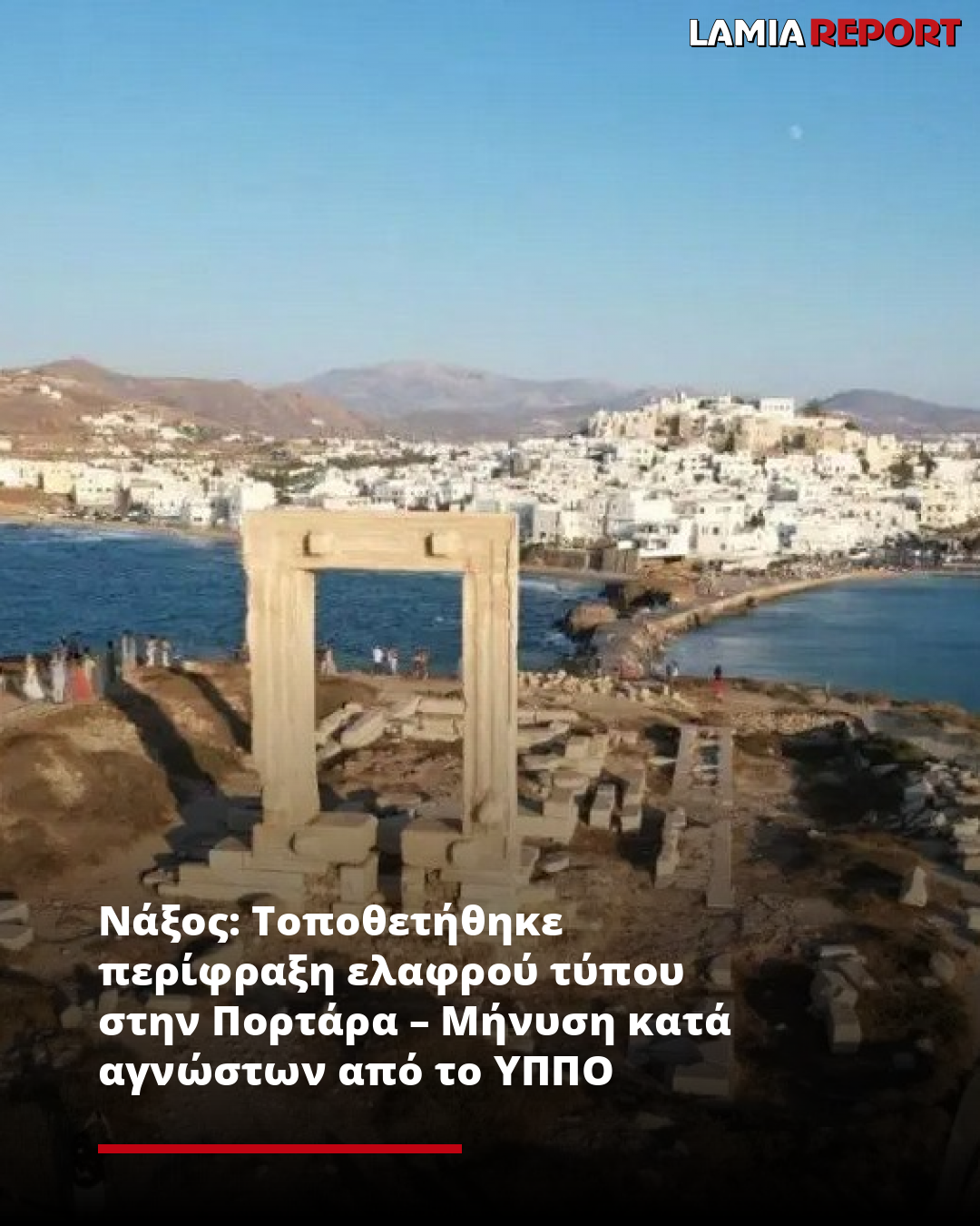 Νάξος: Τοποθετήθηκε περίφραξη ελαφρού τύπου στην Πορτάρα – Μήνυση κατά αγνώστων από το ΥΠΠΟ